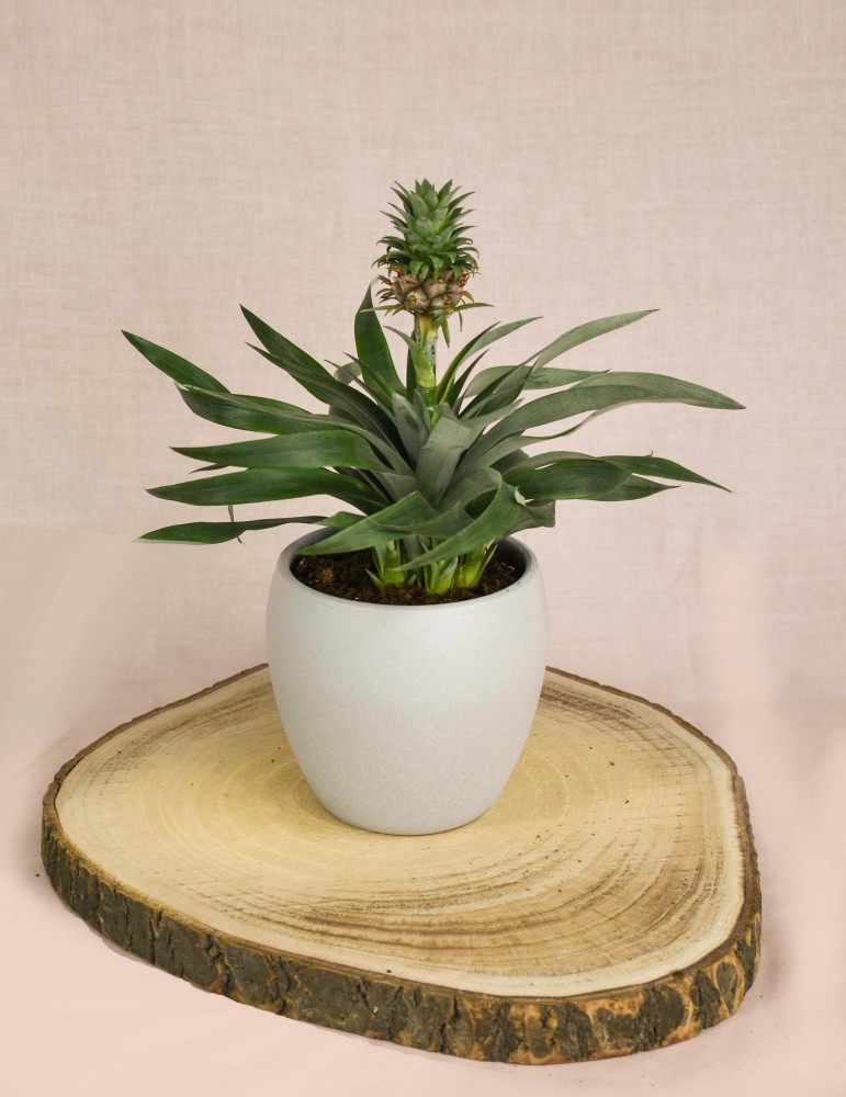 With its ornamental pineapple sitting centre stage, this sun-loving pineapple plant is right at home on a kitchen windowsill.