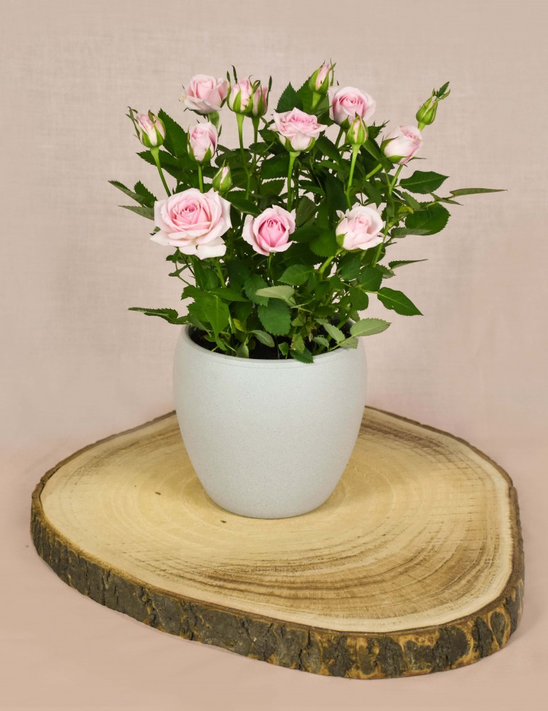 Add a touch of classic charm to your desk or windowsill with a beautiful pink rose plant.